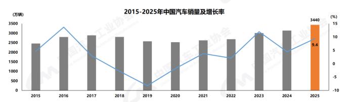 这一成绩大幅超越了政策预期。2025年9月,工信部等八部门联合印发《汽车行业稳增长工作方案(2025—2026年)》(下称《稳增长方案》),为2025年设定了汽车销量约3230万辆、同比增长约3%的年度目标。实际市场表现显示,最终销量不仅达标,更超额完成约210万辆,增速达到9.4%,显著高于预期。