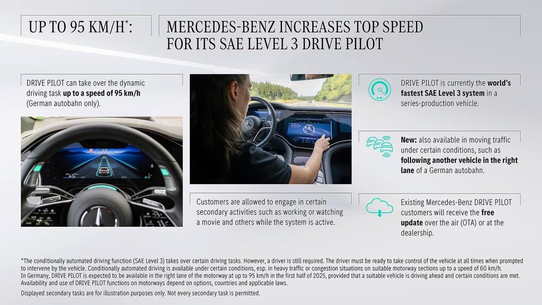 Mercedes-Benz increases top speed of its Level 3 automated driving system to 95 km/h