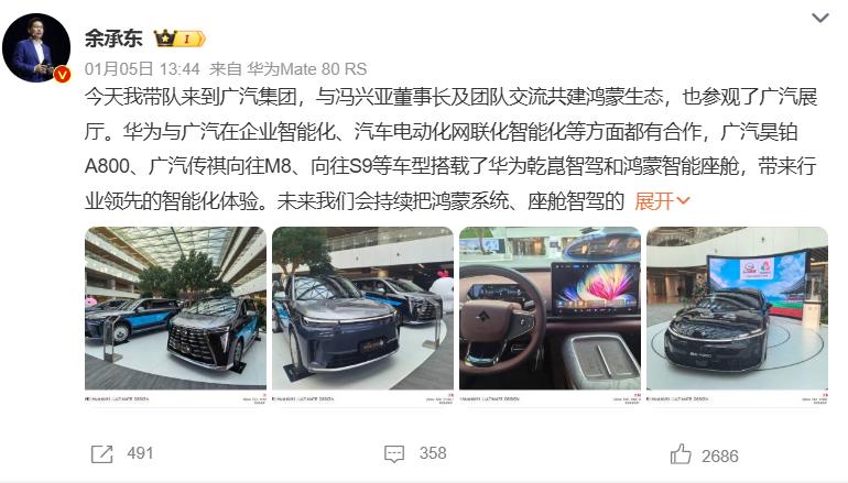 不过值得注意的是,今年1月5日余承东到访广汽集团,双方签约合作,核心是将小艺智能体更好地融入汽车座舱,联手打造更聪明的新一代智能座舱。