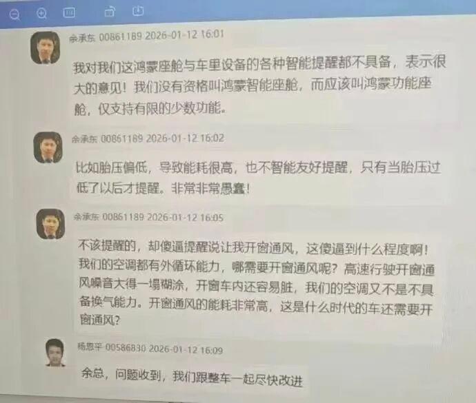 相关产品负责人在群内回应:“问题收到,我们跟整车一起尽快改进。”