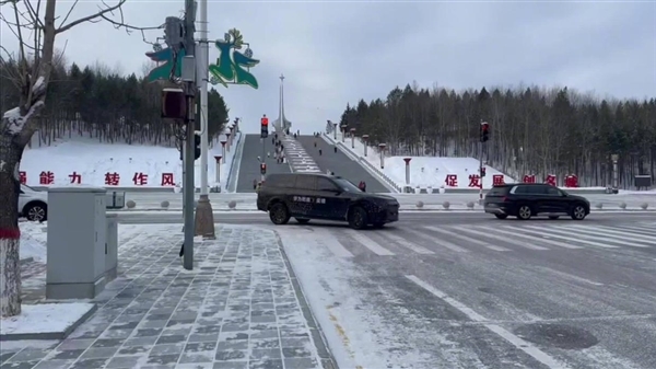 这组谍照展示了奕境车型在冰雪路面的测试场景,新车身披厚重伪装,但仍能看出硬朗方正的整体造型。