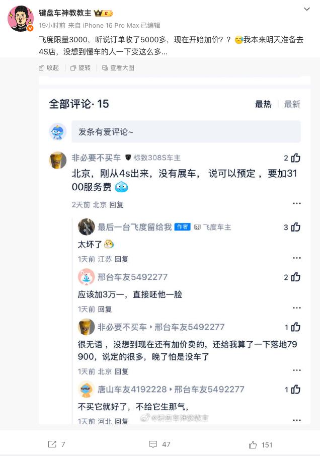 既然对方如此坦诚,电车通也不再绕弯子,直接抛出了那个敏感问题:「这车限量3000台,如果这些都卖完了,我加价的话能不能提车?」