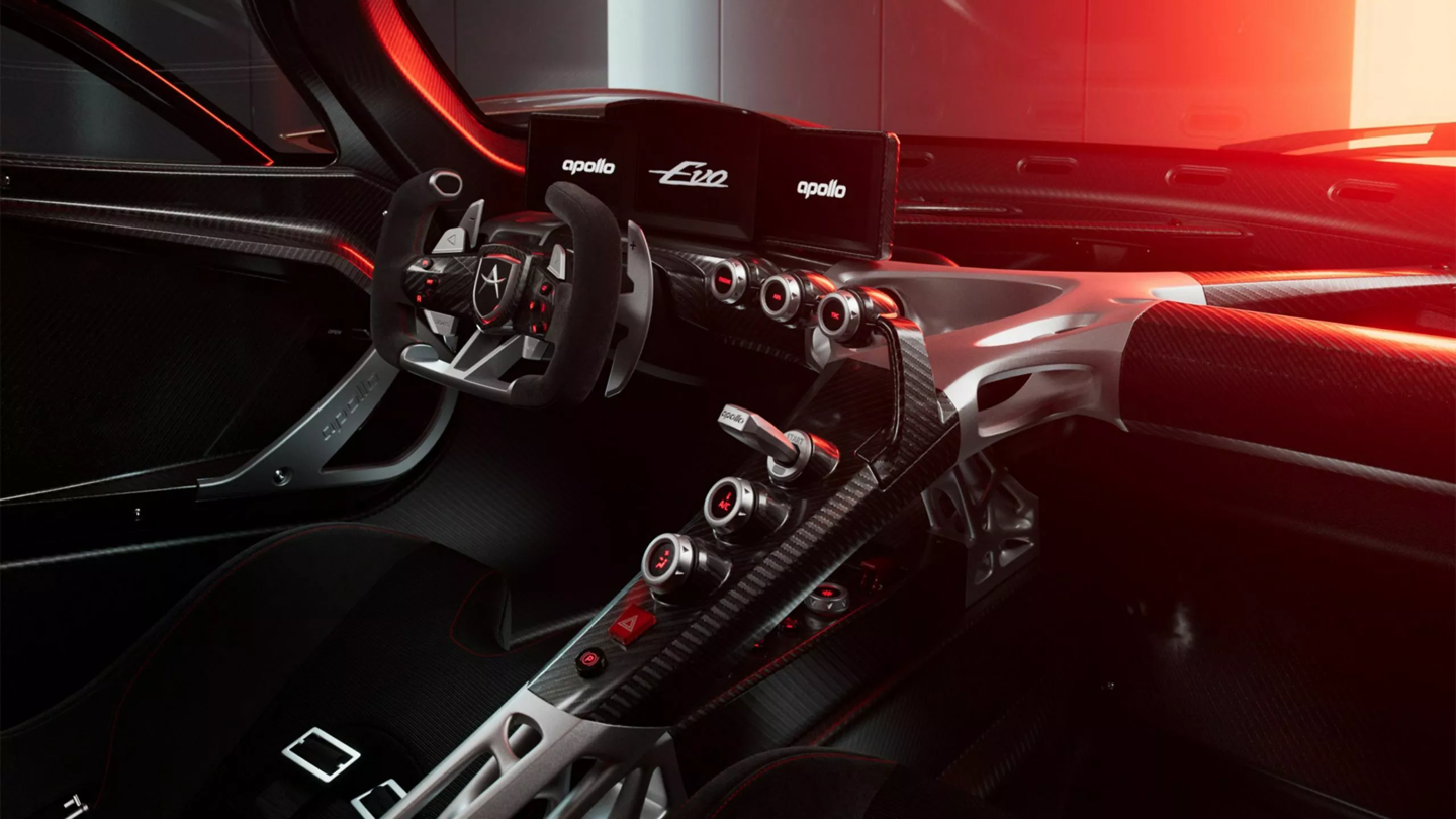 由于无需通过公路车辆的安全法规认证,Apollo 的设计师得以彻底释放想象力,打造出比帕加尼或科尼赛克更为狂野的外观。车辆内部同样延续了这种极简与硬核的风格,剥离了所有非必要元素以展示原始的机械结构。