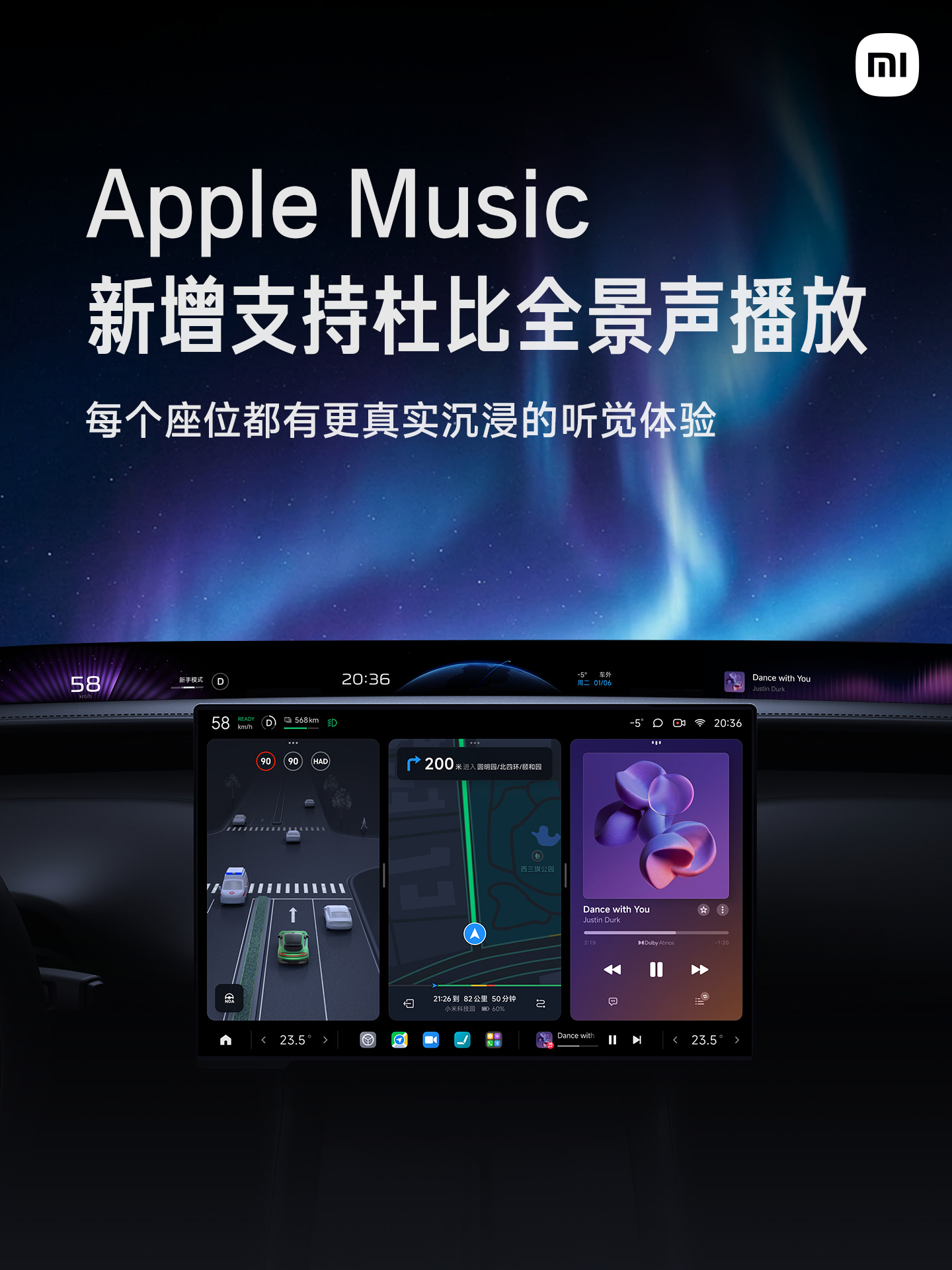 IT之家 1 月 22 日消息,据小米汽车官微消息,小米汽车 Apple Music 现在已经支持杜比全景声播放,车内每个座位都有更加真实沉浸的听觉体验。