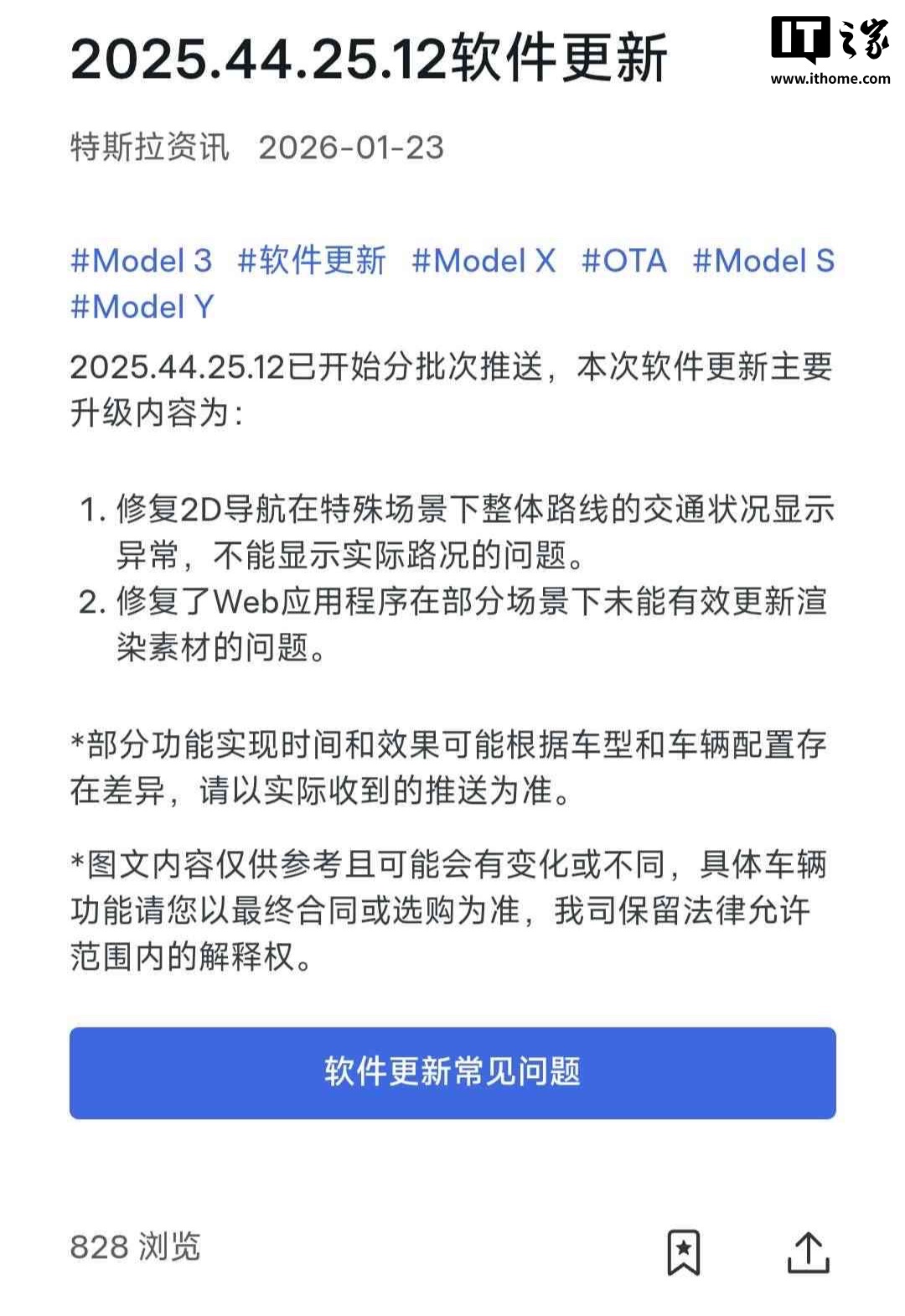 IT之家 1 月 23 日消息,特斯拉中国现已为旗下 Model S/3/X/Y 车型推送 2025.44.25.12 软件更新,本次更新仅修复 Bug,没有提供新功能。
