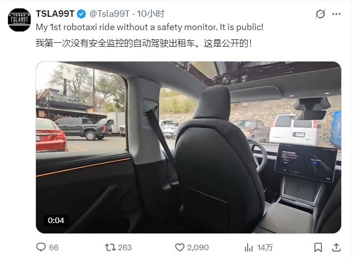 全网第一位体验到车内无人监督、完成特斯拉Robotaxi付费体验的,应该是一位特斯拉的前AI工程师。