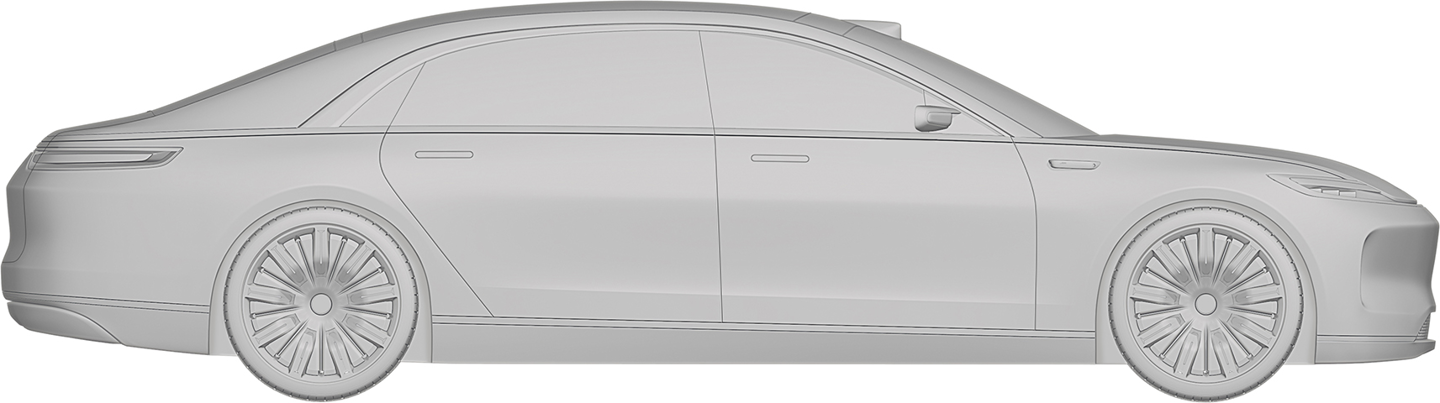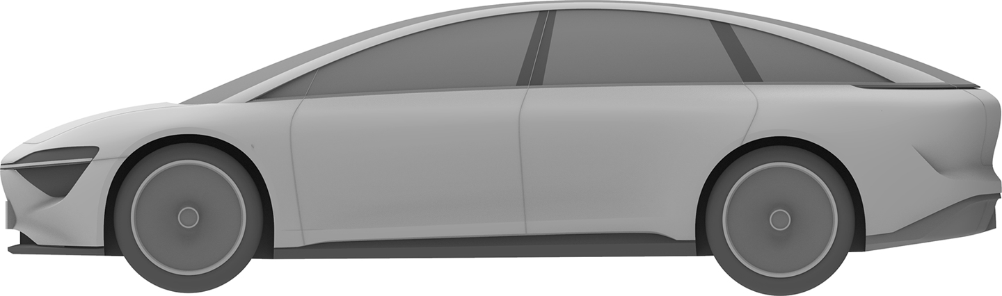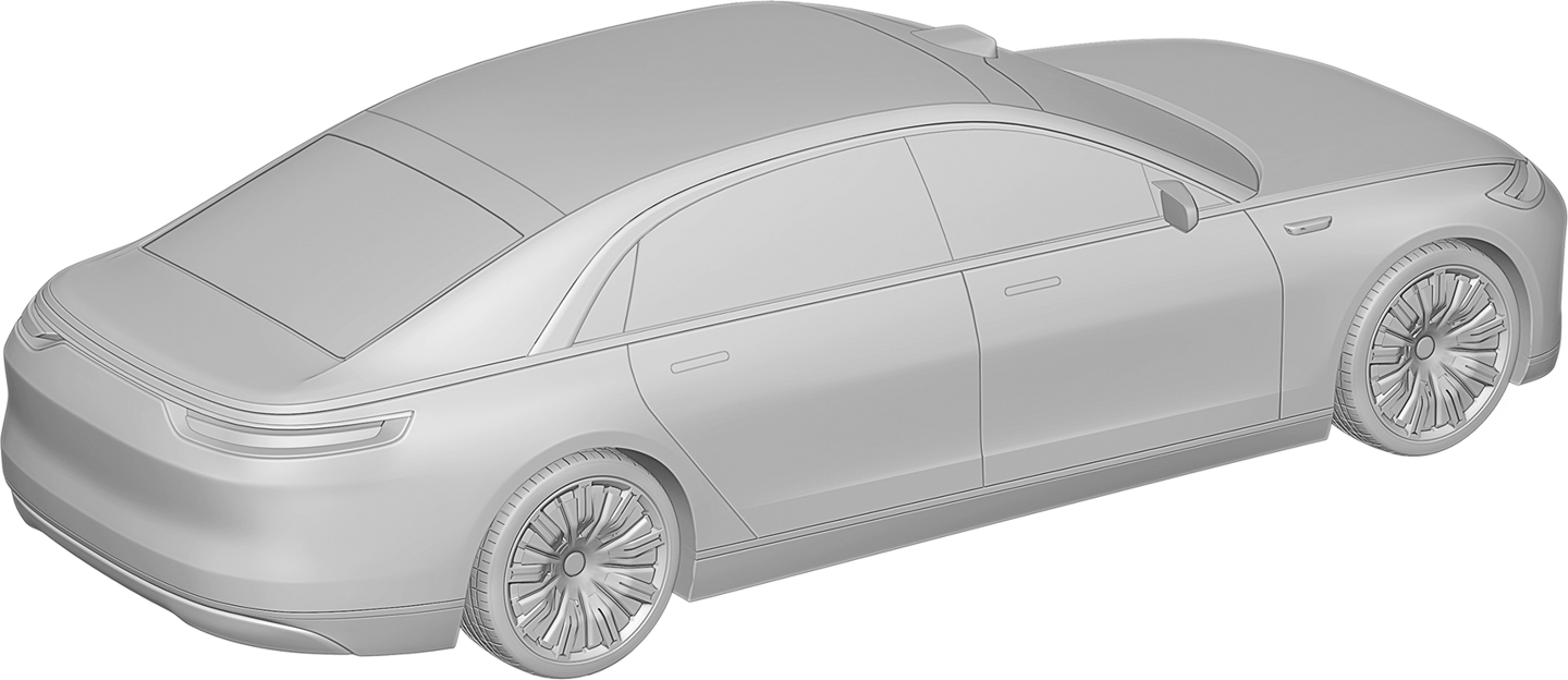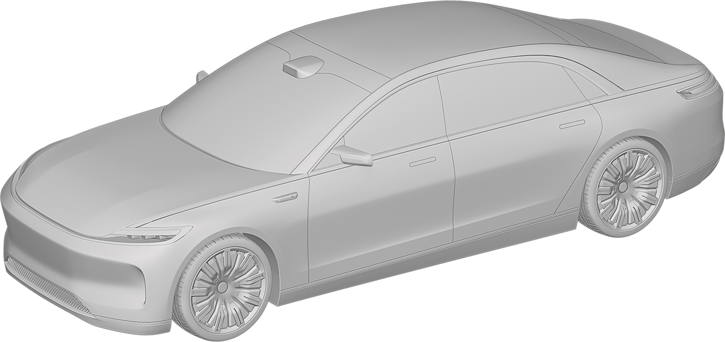 华为终端有限公司还在 2023 年 2 月 8 日申请了另一份汽车外观专利,这款车预计仍是一款“行政旗舰”,不过拥有与上图不同的前脸设计,向内凹进的中网更强调动感风格,并换装了传统后视镜。不过,舒展的车身线条和大尺寸轮毂依旧吸睛。