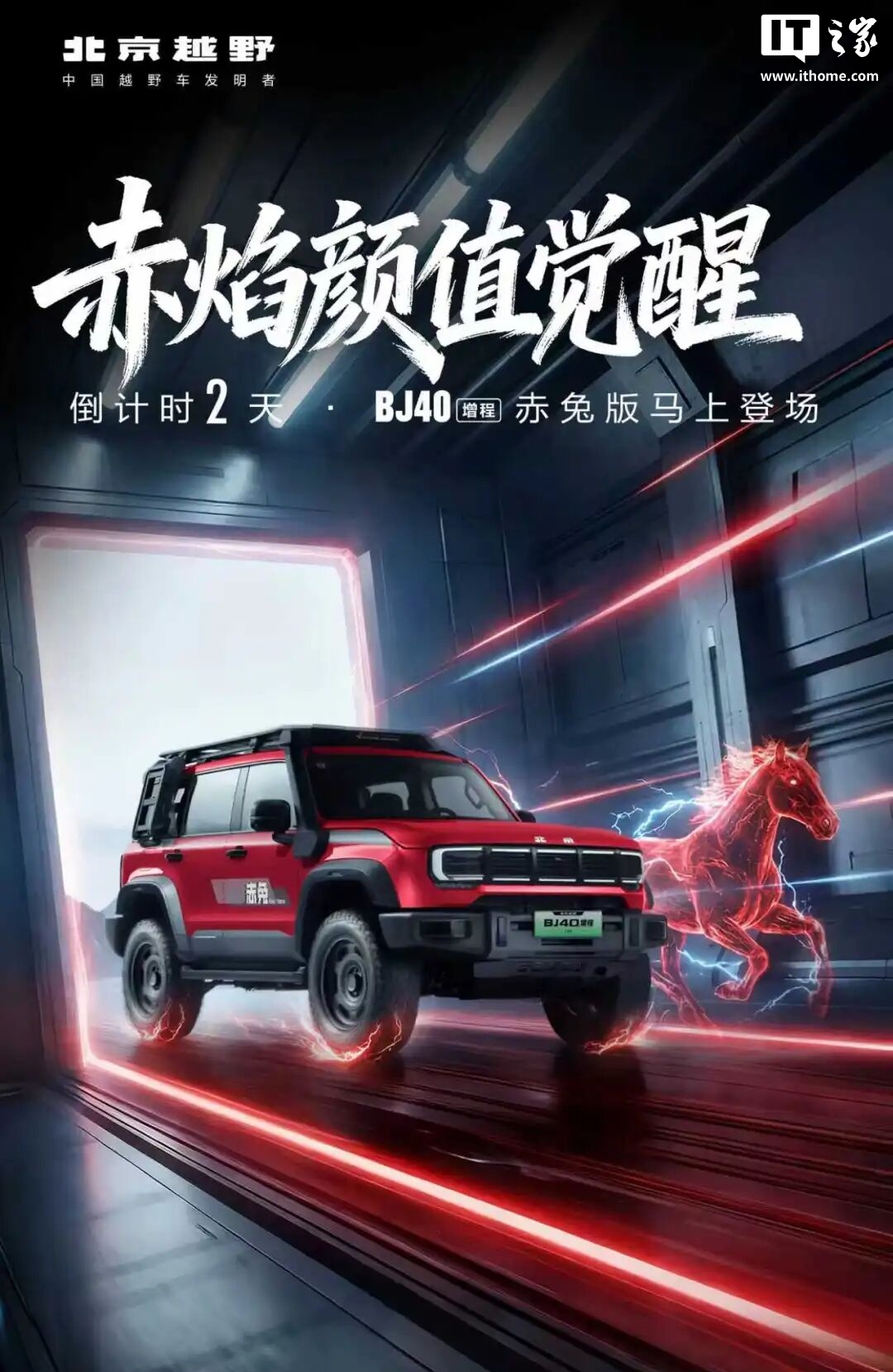 BJ40 增程赤兔版:赤焰车身搭配机甲硬派造型,唤醒骨子里的越野本能。