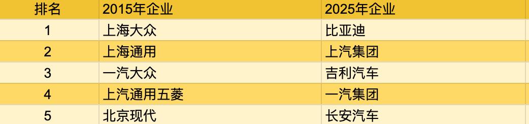 吉利和奇瑞曾是自主品牌的扛旗者,2015年前后它们尚在前十边缘徘徊。而2025年这两家分别位列前三和第六。吉利的极氪、银河等新能源品牌全面开花,黑马奇瑞增长的核心动力在出口, 2025年奇瑞出口超 134 万辆,支撑了其整体排位的跃升。