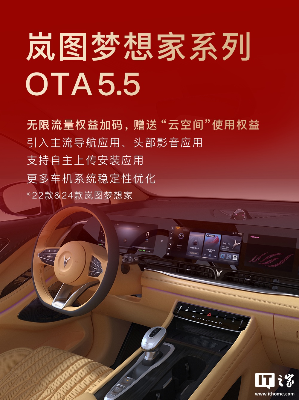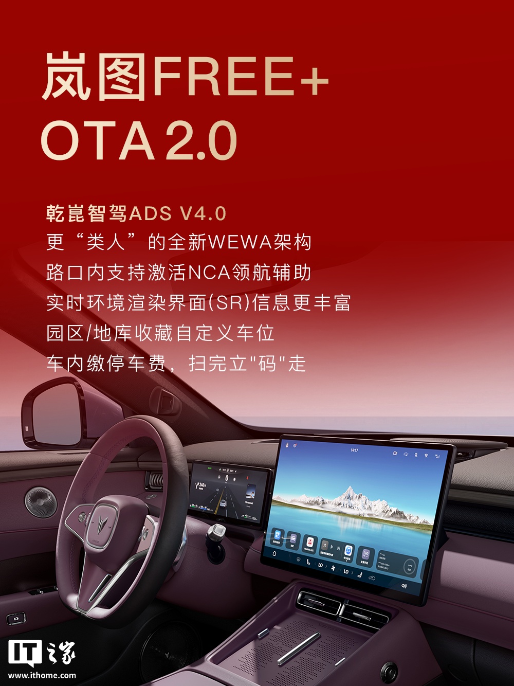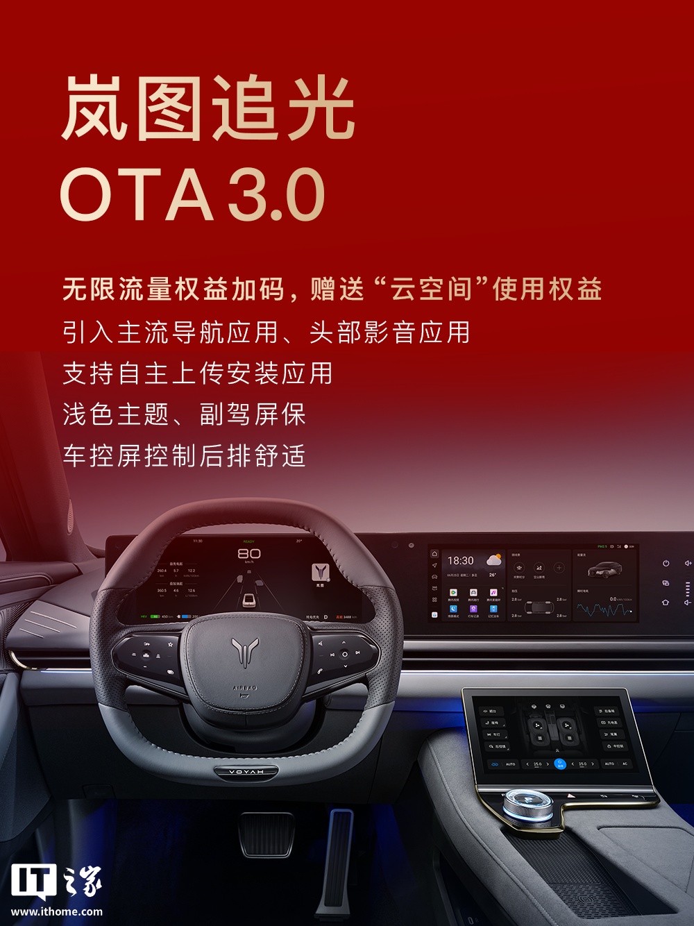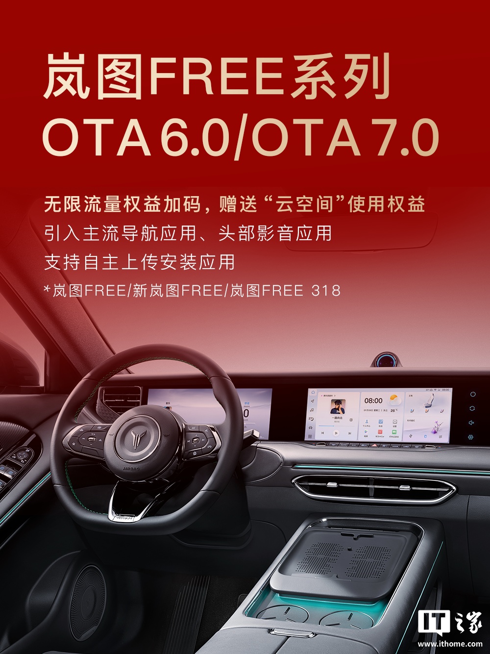 IT之家 1 月 29 日消息,岚图汽车官方今日发布了新春 OTA 速览,公布了旗下车型后续更新计划,覆盖岚图知音、岚图追光、岚图 FREE、岚图泰山、岚图梦想家等。