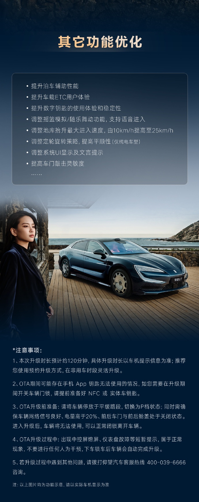 新增一键“预约凌晨升级”:检测和下载升级包后,在弹出的升级提示框选择点击“凌晨 2:00 升级”按钮,可设置车辆在凌晨自动完成系统升级。