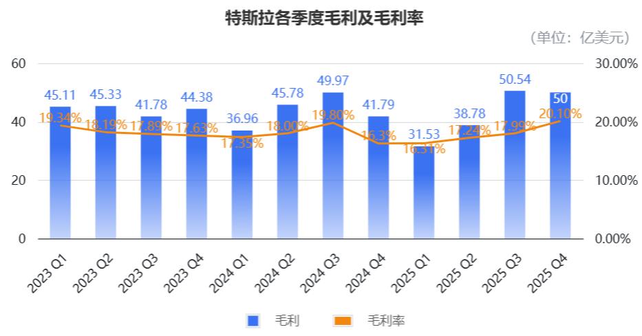 2025年,特斯拉GAAP净利润37.94亿美元,相较2024年的71亿元下降46%,近乎腰斩;非GAAP净利润58.58亿美元,同比下降26%。