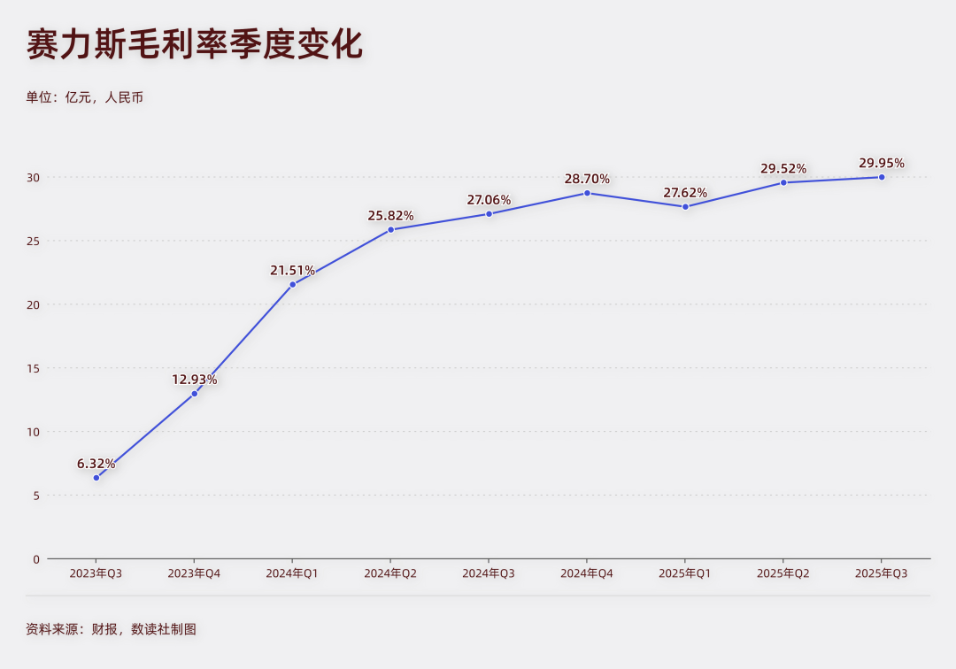 李想在谈及毛利率时,曾经将20%作为车企判断公司有没有持续造血能力的重要指标。显然,赛力斯已经远远做到了安全线之上。