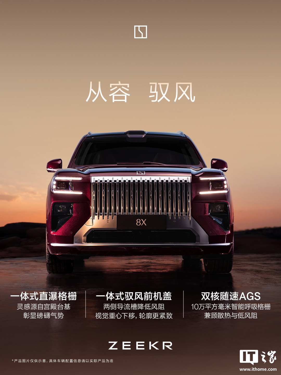 《极氪 8X 旗舰电混 SUV 酒红色外观公布,主打“又强又优雅”》
