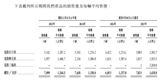 行业价格战愈演愈烈,虽然各个品牌的产品单价常年都保持在千元以上,但实际上利润空间依然有限。招股书显示,截至2025年9月30日,台铃电动自行车平均售价为1393.7元/辆,电动摩托车平均售价为1585.3元/辆。
