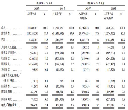 此外,公司的利润规模也呈现大幅增长,净利润由2023年的2.87亿元增加至2024年的4.72亿元,增长率为64.9%。公司的净利润由截至2024年9月30日止九个月的3.70亿元增加至截至2025年9月30日止九个月的8.23亿元,增长率为122.4%。