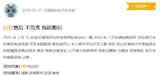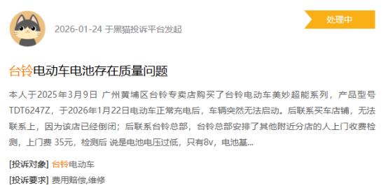 此外,台铃近年来还面临来自用户信任层面的严峻挑战。第三方投诉平台显示,截至发稿前包含台铃词条的投诉量已经超过2000条,其中售后服务推诿以及电池存在质量问题表现较为突出。