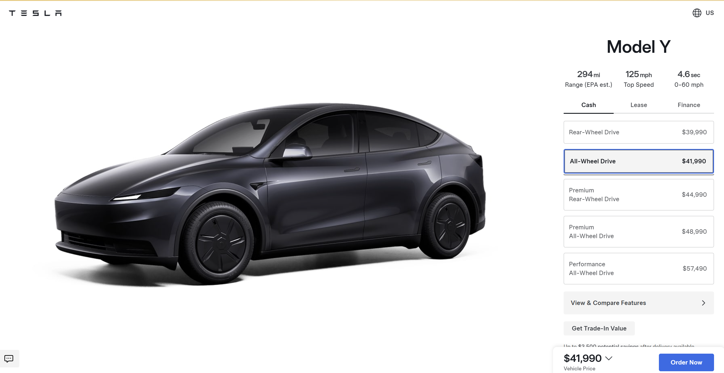凤凰网科技讯 2月3日,据特斯拉美国官网显示,特斯拉Model Y全轮驱动版售价定为41,990美元(现汇率约合29.14万元人民币),而此前的的定价为48990美元(现汇率约合34万元人民币),降价7000美元。