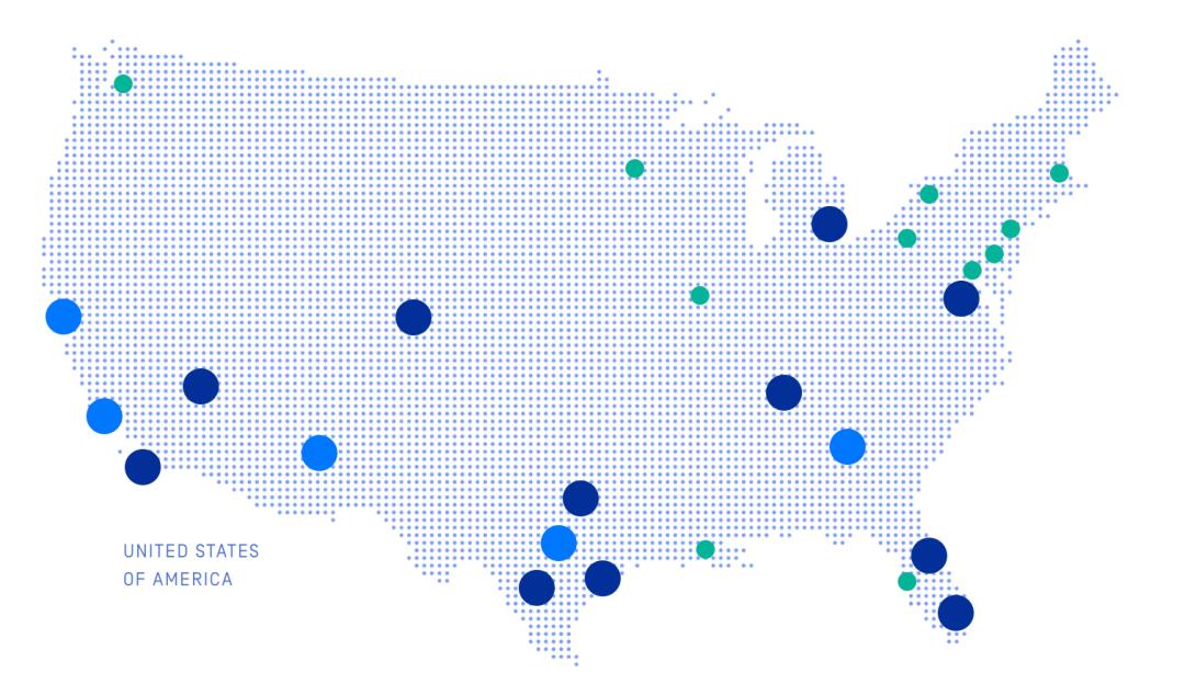在这样的背景下,Waymo的扩展速度在北美市场也是相对较快的,截至目前,Waymo已在美国的凤凰城、旧金山、洛杉矶、奥斯汀、亚特兰大和迈阿密等六个城市稳定运营,单周付费订单量突破45万单。