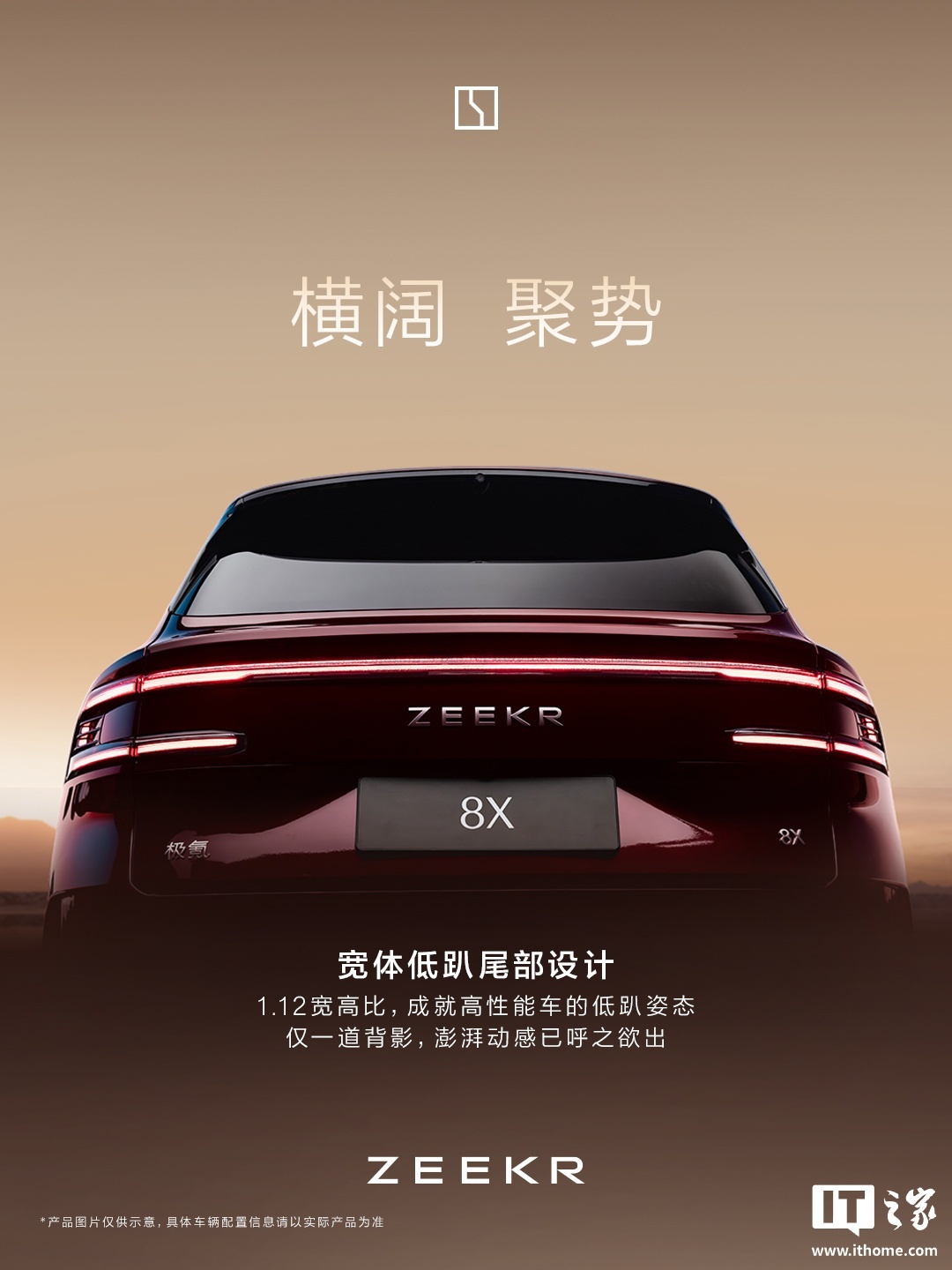 据此前官方公布的信息,极氪 8X 定位“超级电混高性能旗舰 SUV”,将于今年上半年上市。新车采用 0.618 黄金比例设计、拥有 1:4 轮轴比,尺寸为 5100×1998×1780mm、轴距 3069mm。
