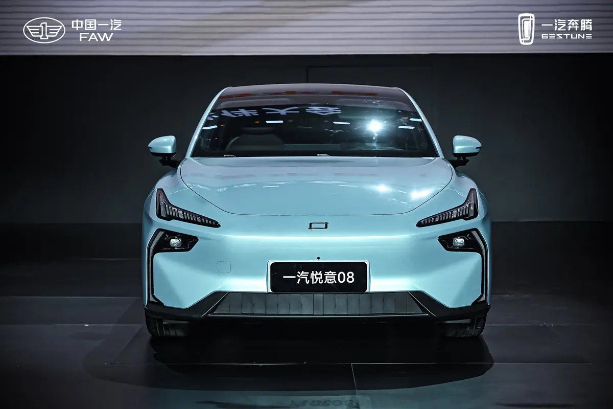 一汽悦意 08 的设计融合溜背轿跑造型、贯穿式尾灯和半隐藏式门把手,车头配备星河瀑布动态灯组,以增强辨识度。