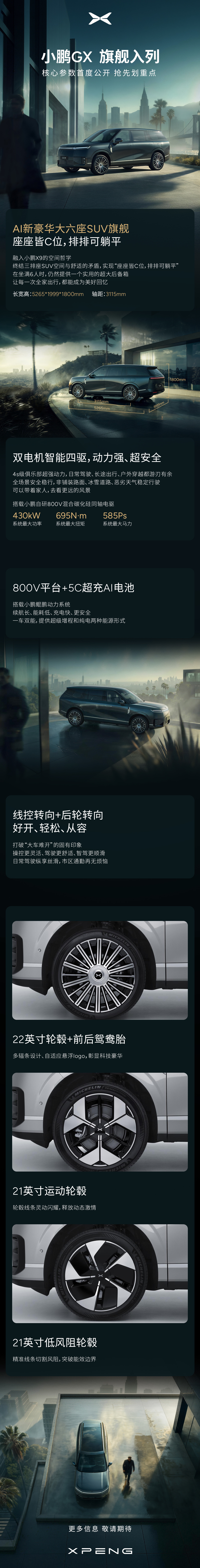 IT之家 2 月 7 日消息,小鹏汽车董事长何小鹏昨晚透露小鹏 GX 预计四五月上市,并发布多张官图。