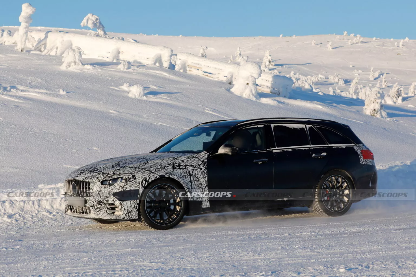CarScoops 摄影师在拍摄 C 53 原型车时,同时还发现了宝马新一代 M5 的测试车。他们形容该车的前脸设计比此之前的测试车更接近“Neue Klasse”风格。