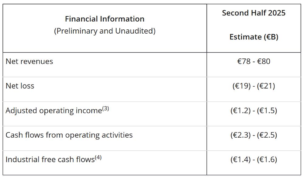 根据Stellantis集团提前公布的2025年第四季度财务数据,预计2025年下半年亏损金额达190亿至210亿欧元(约合人民币1561亿元至1725亿元)。