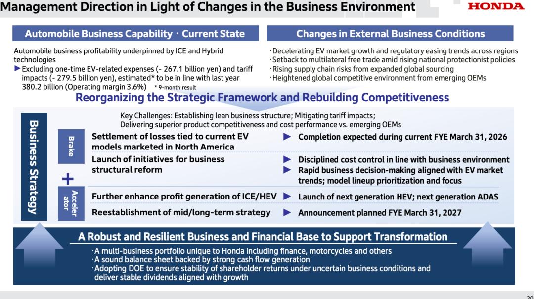 对于前三个财季利润大跌的原因,本田也在报告中直接指出,是来自美国关税的影响以及与电动车相关的一次性费用导致利润下降。