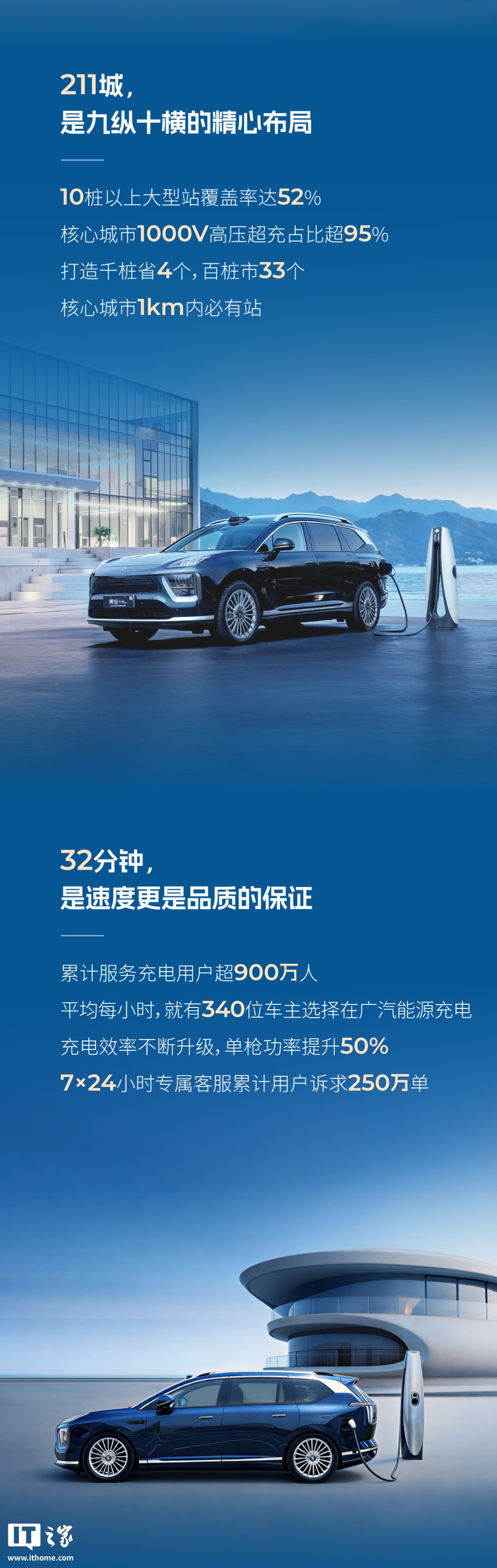另外,广汽 10 桩以上大型站覆盖率达 52%,核心城市 1000V 高压超充占比超 95%,打造千桩省 4 个、百桩市 33 个,核心城市 1km 内必有站。