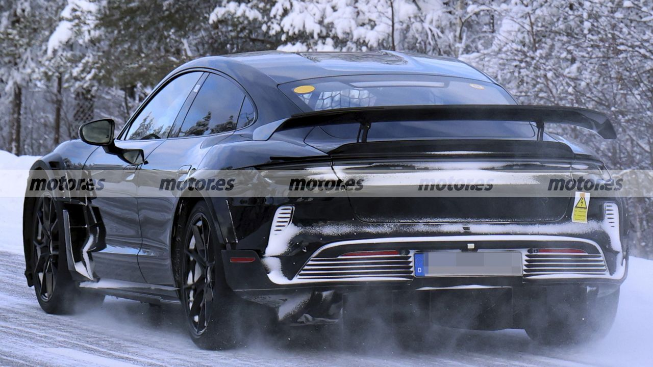 动力方面,新车双电机输出预计将超过 Taycan Turbo GT 的 1019 马力,然而相比单纯提升功率,强化空气动力学设计更显重要。谍照显示,前保险杠经过重新设计,前唇尺寸更大,用以增强前轴下压力。前杠两侧翼片以及尚未定型的轮拱进气口,暗示空气动力学尚有优化空间。