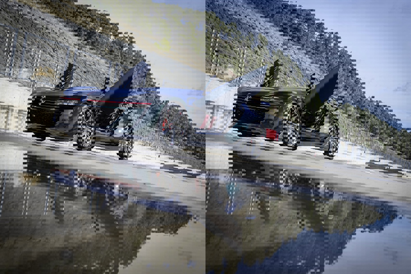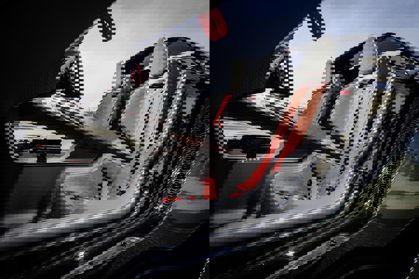车身结构上,该车采用了碳纤维单体壳设计,并通过一根从后至前的开放式横杆将座舱一分为二。内饰布局完全服务于赛道,配备了带有五点式安全带的赛车桶椅、Alcantara 包裹的四辐方向盘以及安装在转向柱上的赛车显示屏。