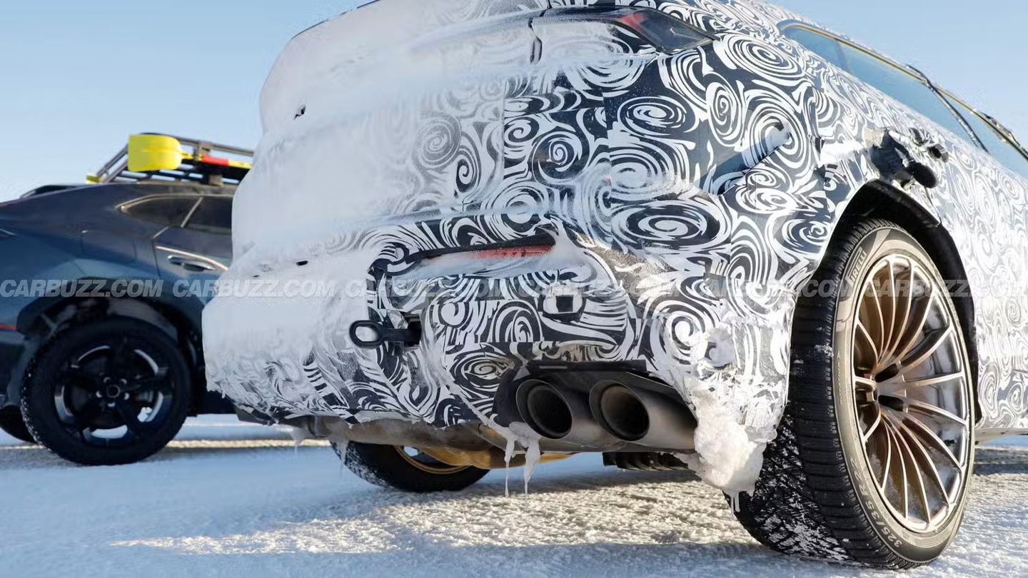 透过轮毂可以发现,测试车配备了大尺寸的碳陶瓷刹车盘与卡钳,这通常是动力大幅提升的直接信号。兰博基尼显然不希望新车仅仅是一台“直线加速机器”,因此极有可能引入了老款 Performante 的硬核底盘技术,例如更硬的固定式螺旋弹簧悬挂(替代空气悬挂)以及偏向后驱特性的四驱系统,以抵消混动电池带来的额外重量,提升操控灵活性。