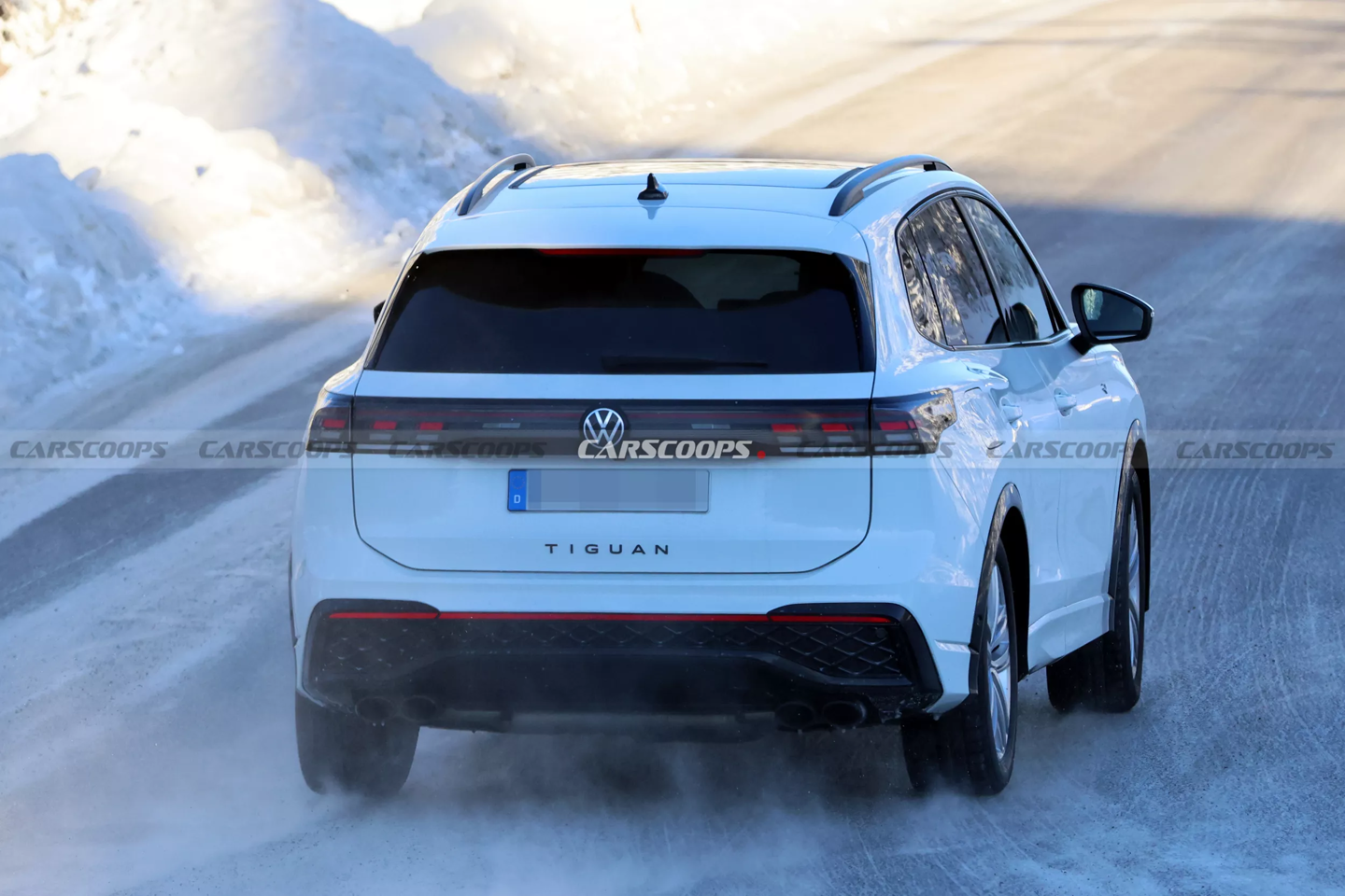 外观方面,这辆测试车几乎处于完全无伪装状态,整体设计沿用现款 Tiguan R-Line 方案,最显著的特征位于车尾采用 R 系列标志性的四出排气管,以及包围在周围的亮黑色后扩散器装饰件。