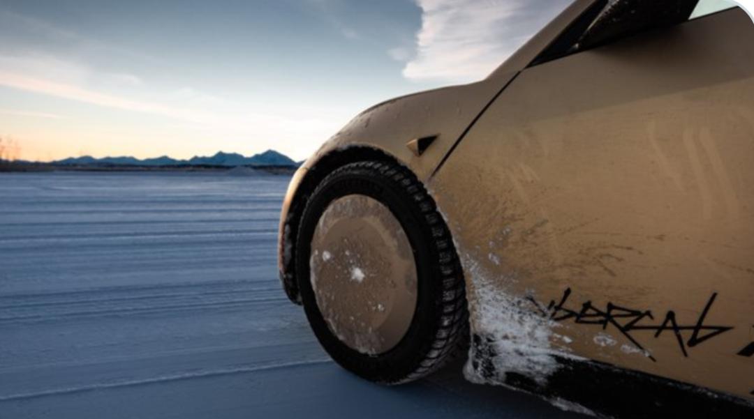 轮毂采用封闭式设计,旁边有“Cybercab”标识。