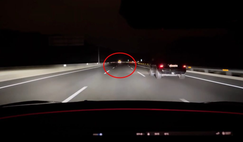 据IT之家了解,特斯拉提供的矩阵式大灯通过单独调节灯珠亮度,在保证驾驶员视野清晰的同时,降低对向车辆所在区域的灯光亮度,避免干扰其他车辆。实际效果如下: