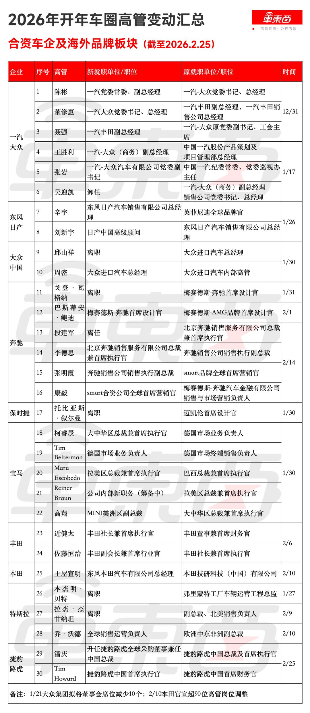 2026年开年合资车企及海外品牌高管变动汇总