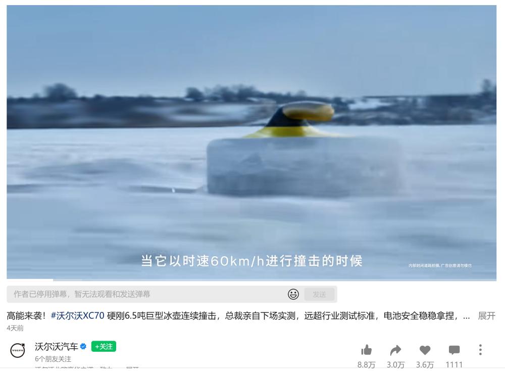 恰逢春节期间米兰冬奥会火热进行,沃尔沃则发布了冬奥冰壶主题创意测试视频,借势赛事热度强化安全卖点。