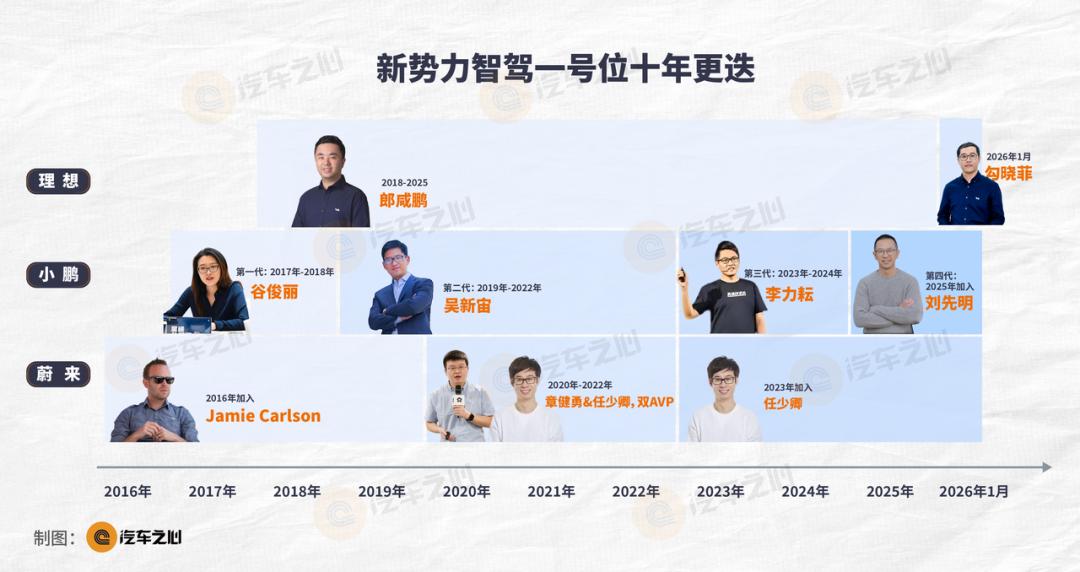 而刘先明,已经是小鹏自研智驾十年来的第四任大将。