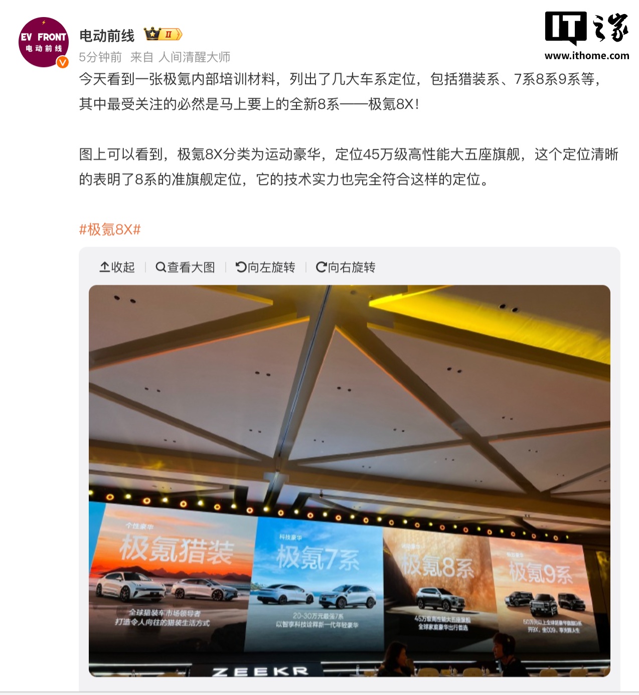 IT之家 2 月 26 日消息,博主 @电动前线 今天下午在微博分享了一张极氪的“内部培训材料”,其中包含了猎装车、7 系、8 系、9 系等多个车系的定位。