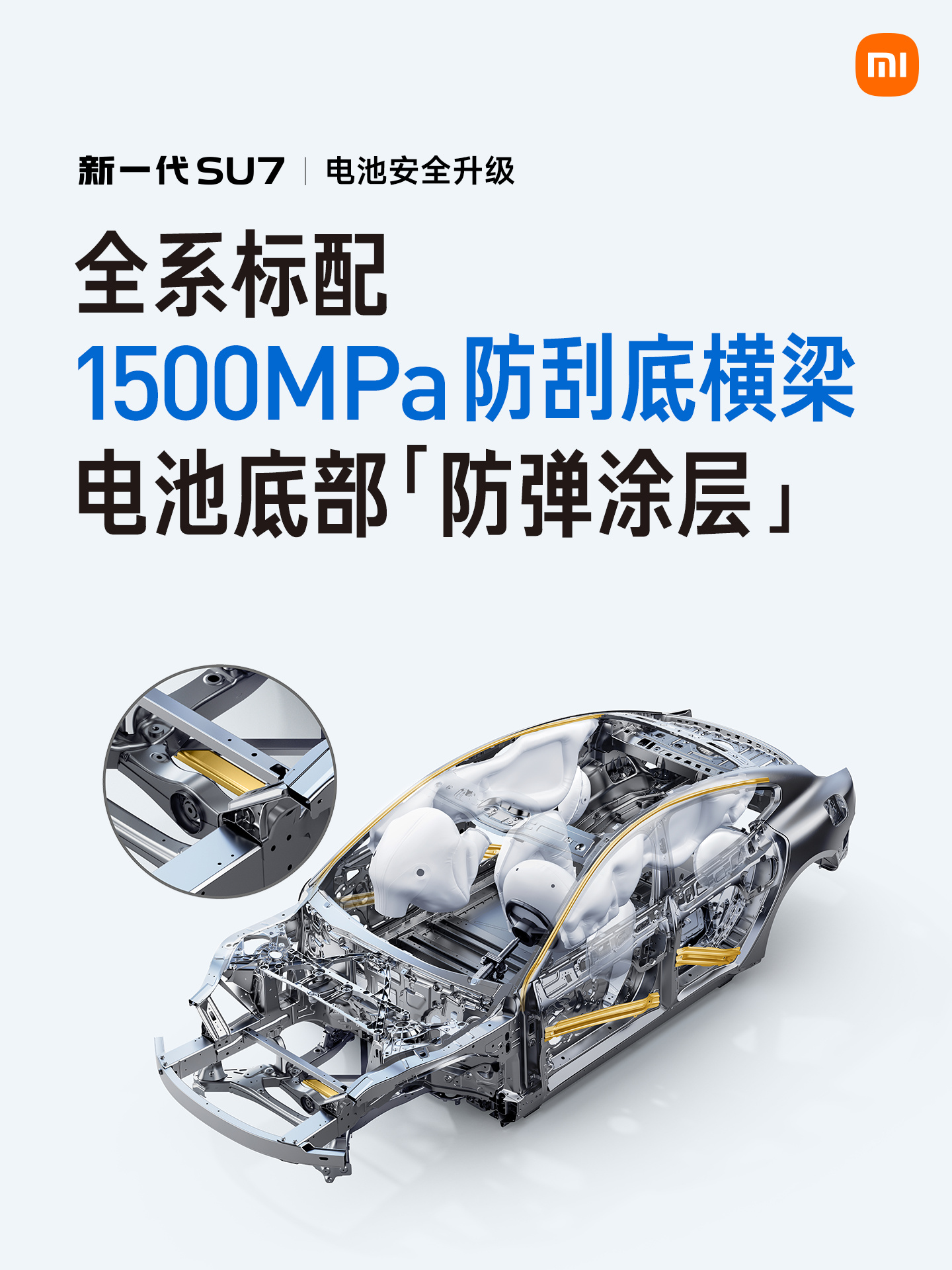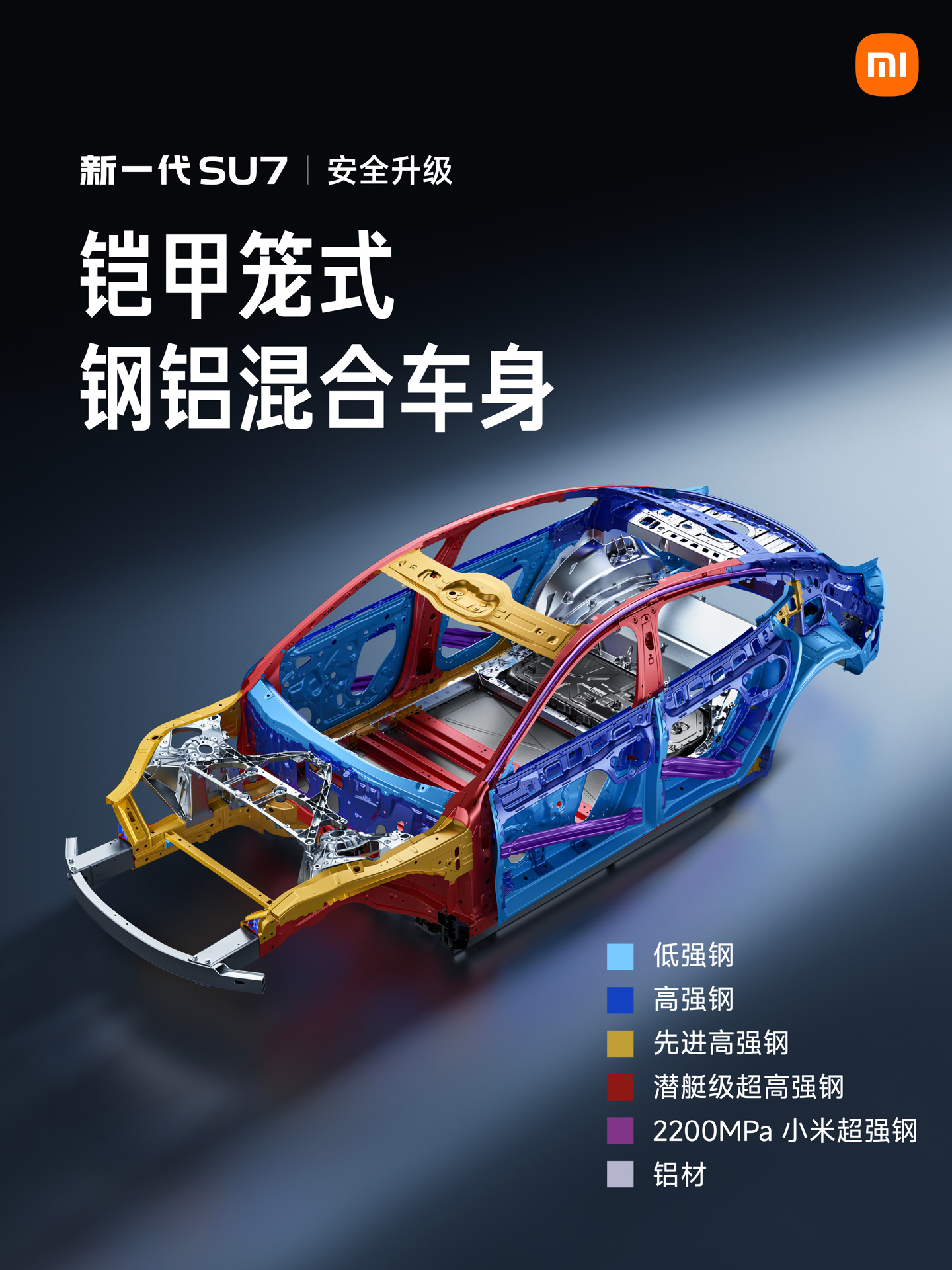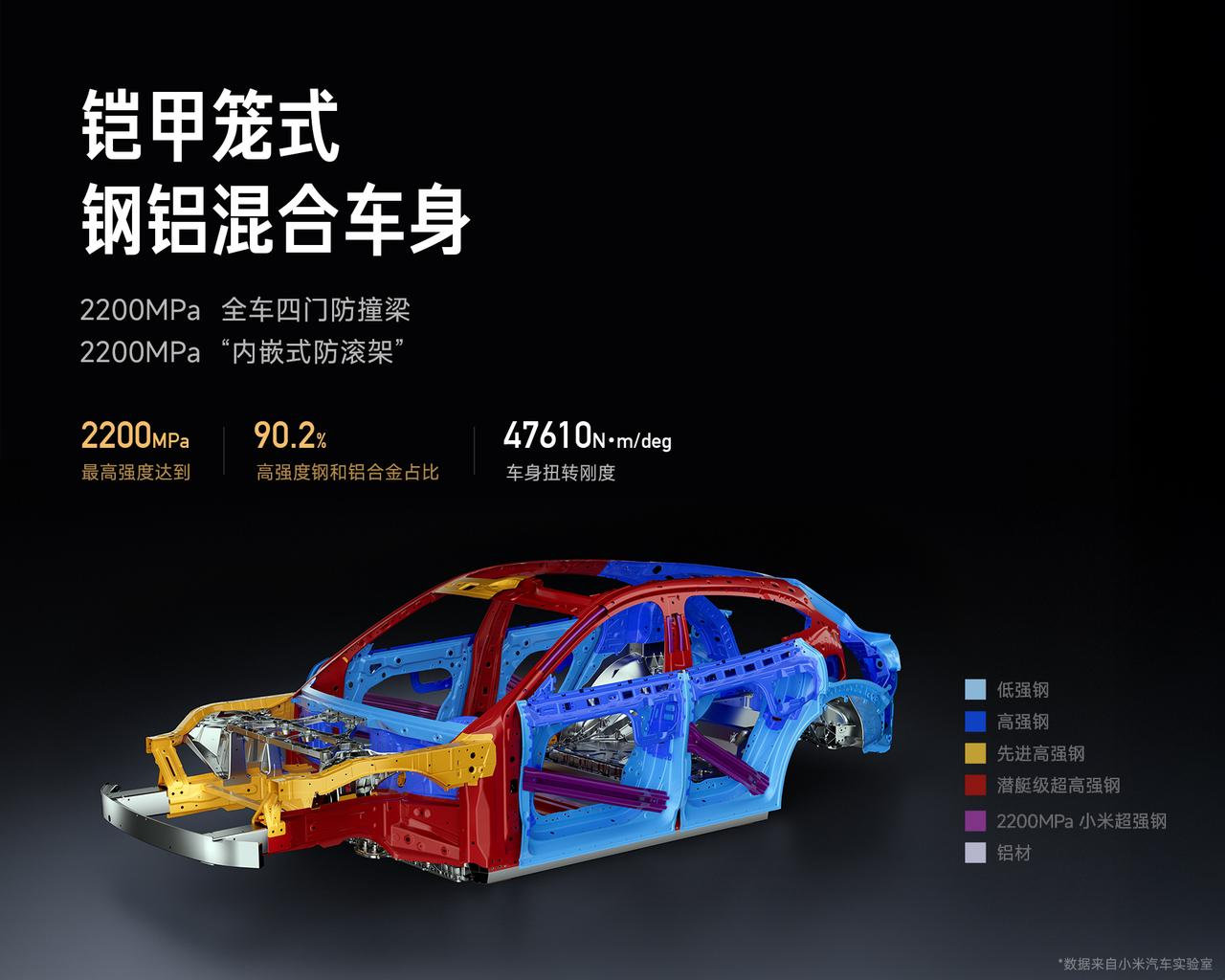 据介绍,小米汽车拥有五层安全体系,其中「被动安全」是“关键时刻能兜底的硬功夫”。其中,新一代 SU7 采用多种硬核材料,包括: