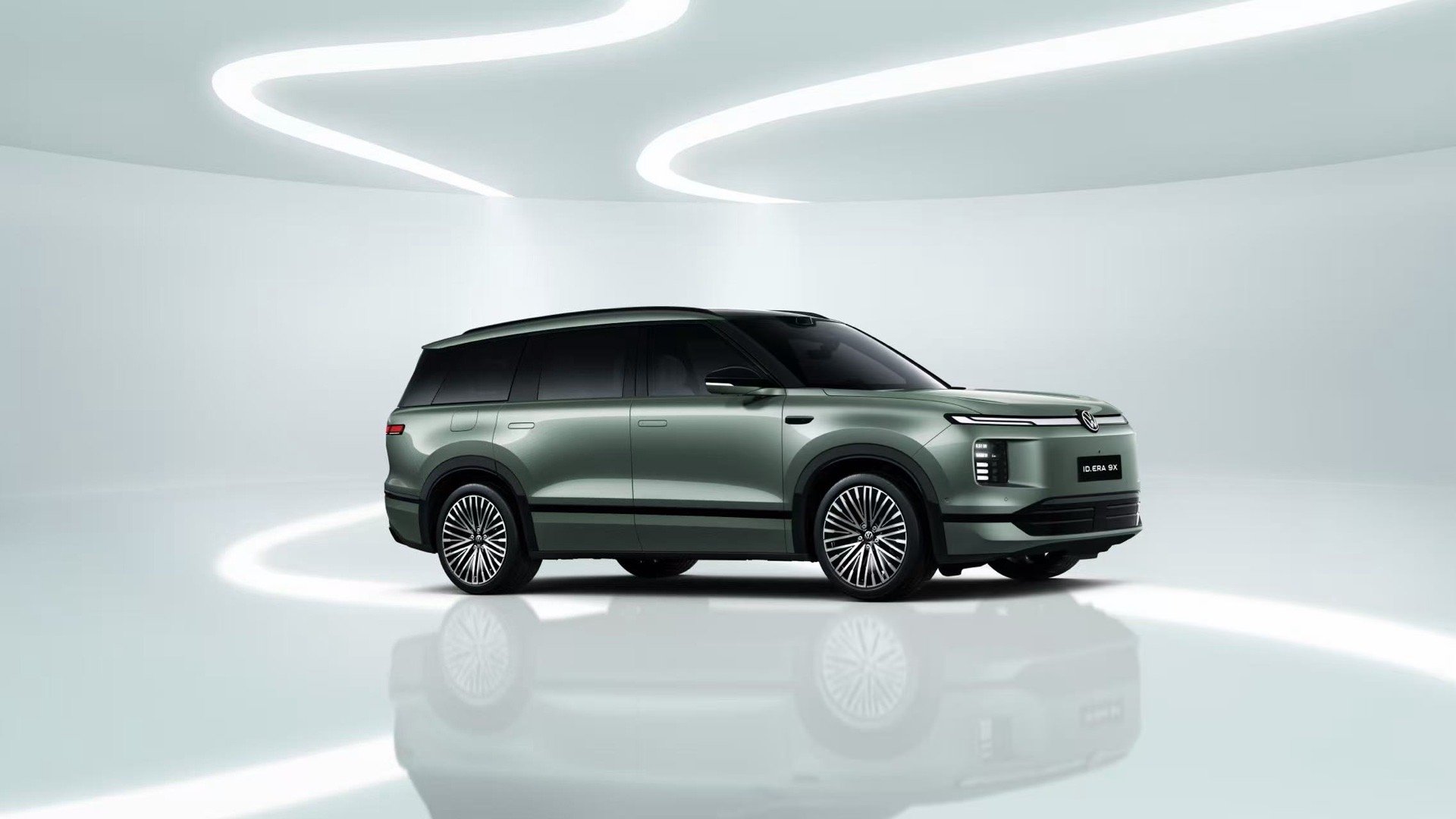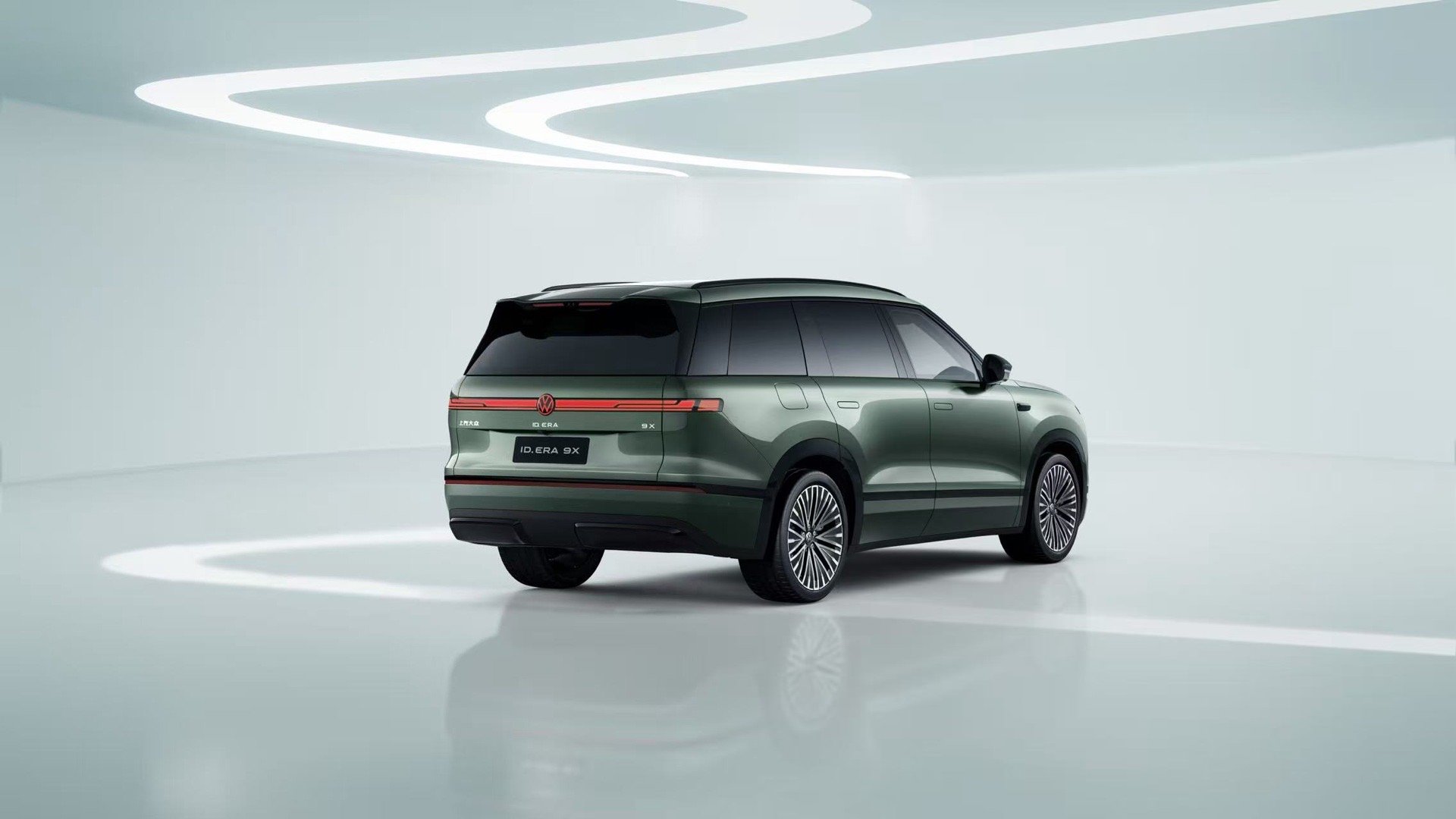 IT之家 2 月 28 日消息,今日,上汽大众发布了 ID.ERA 9X 第二个颜色仙踪绿车色官图。该车采用大三排布局,中控及副驾采用双联屏设计。