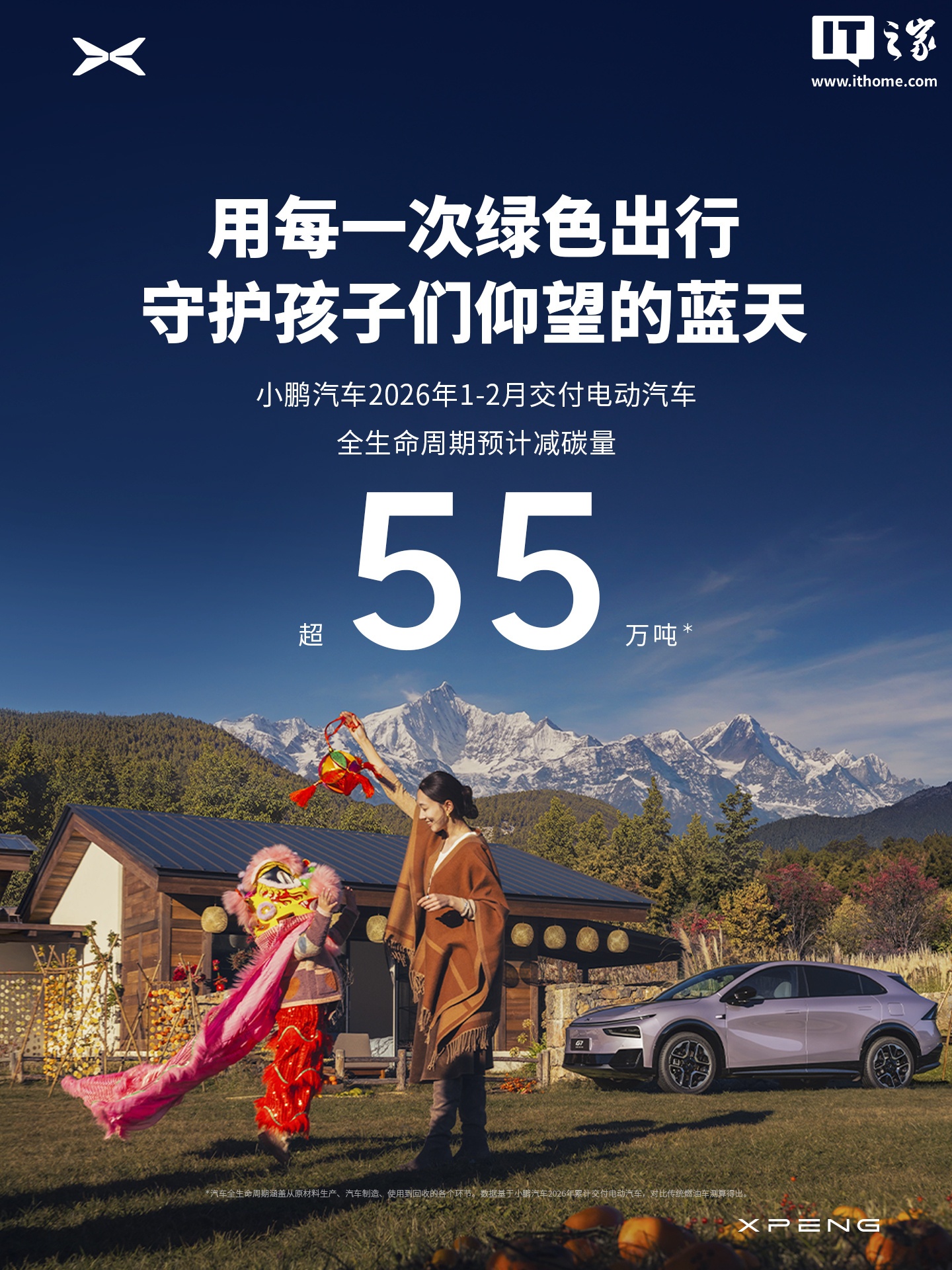 IT之家 3 月 1 日消息,小鹏汽车官方今日公布最新交付成绩:2026 年 2 月,共交付新车 15256 台。2026 年 1-2 月交付的车辆,相较于传统燃油车型,全生命周期预计可减少碳排放约 55 万吨,相当于 916 万棵中等树苗 10 年的固碳量。