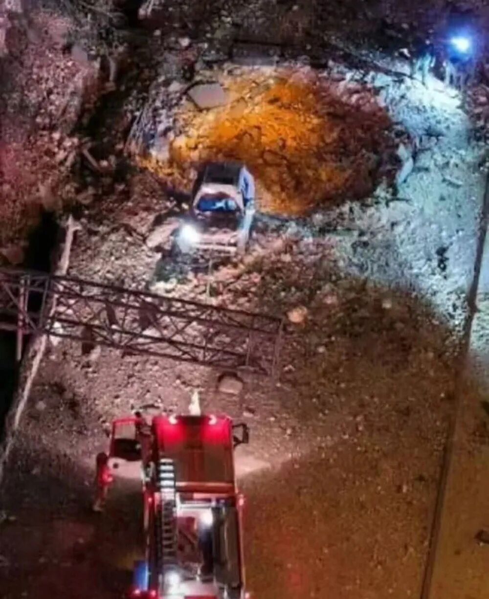 图丨当地时间3月1日晚间,一台比亚迪ATTO 3(元Plus)在行驶中意外被伊朗战术导弹击中,导弹毗邻车尾爆炸,将路面炸出了深达3米直径7的大坑,但这台几乎被直击的ATTO 3结构基本完好且气囊全数爆开,成功为车内乘员保住一命
