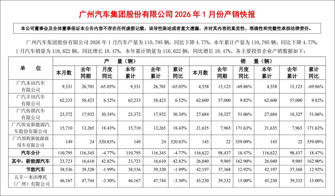 开年第一个月,以集团的口径去看旗下品牌的销量,好像还不错。然而,2026年的中国车市究竟会一个怎么的开局拉开序幕,所有外部表现都很清楚地给广汽提着醒。