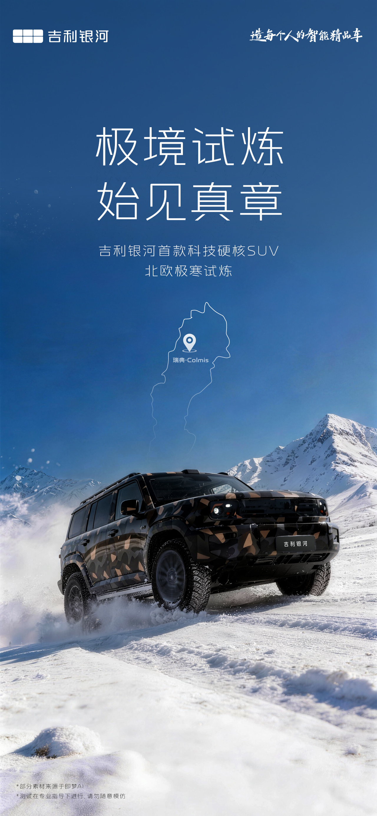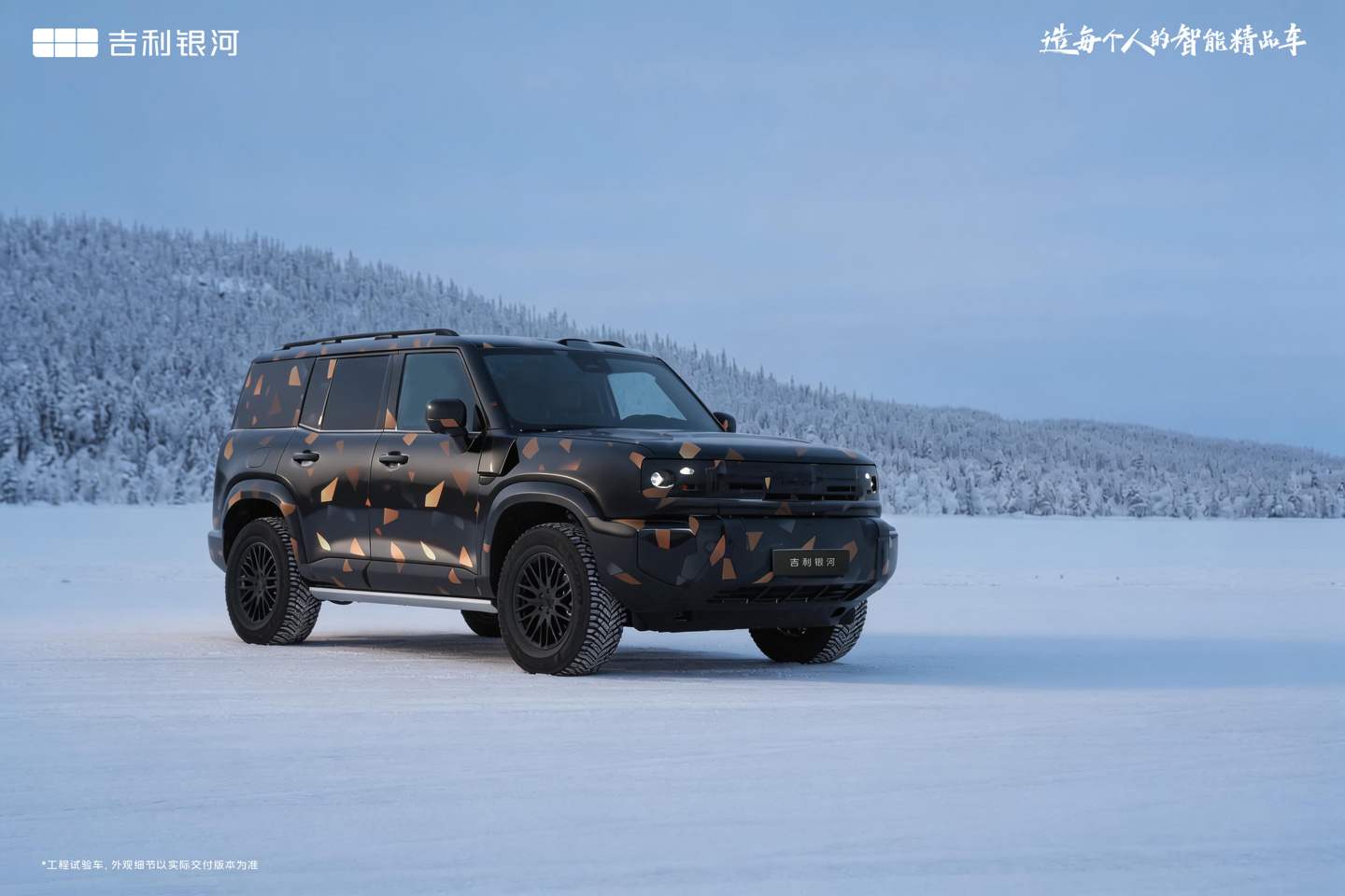 该车型定位科技硬核 SUV,这也是银河品牌的首款硬派越野 SUV,目前正在瑞典 Colmis 等北欧测试场进行冬季测试。