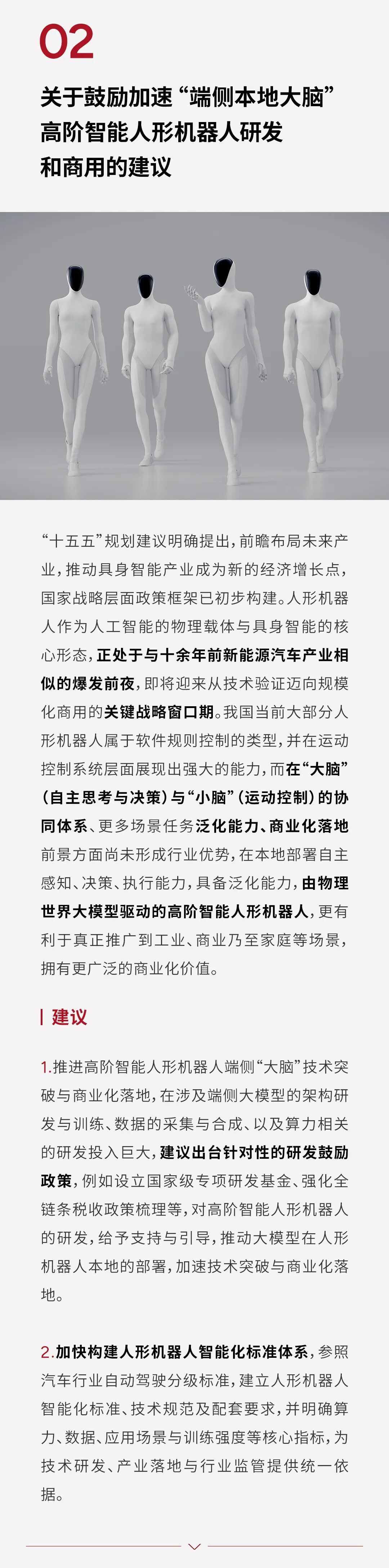 第二个议题是:关于鼓励加速“端侧本地大脑”高阶人形机器人研发和商用的建议;
