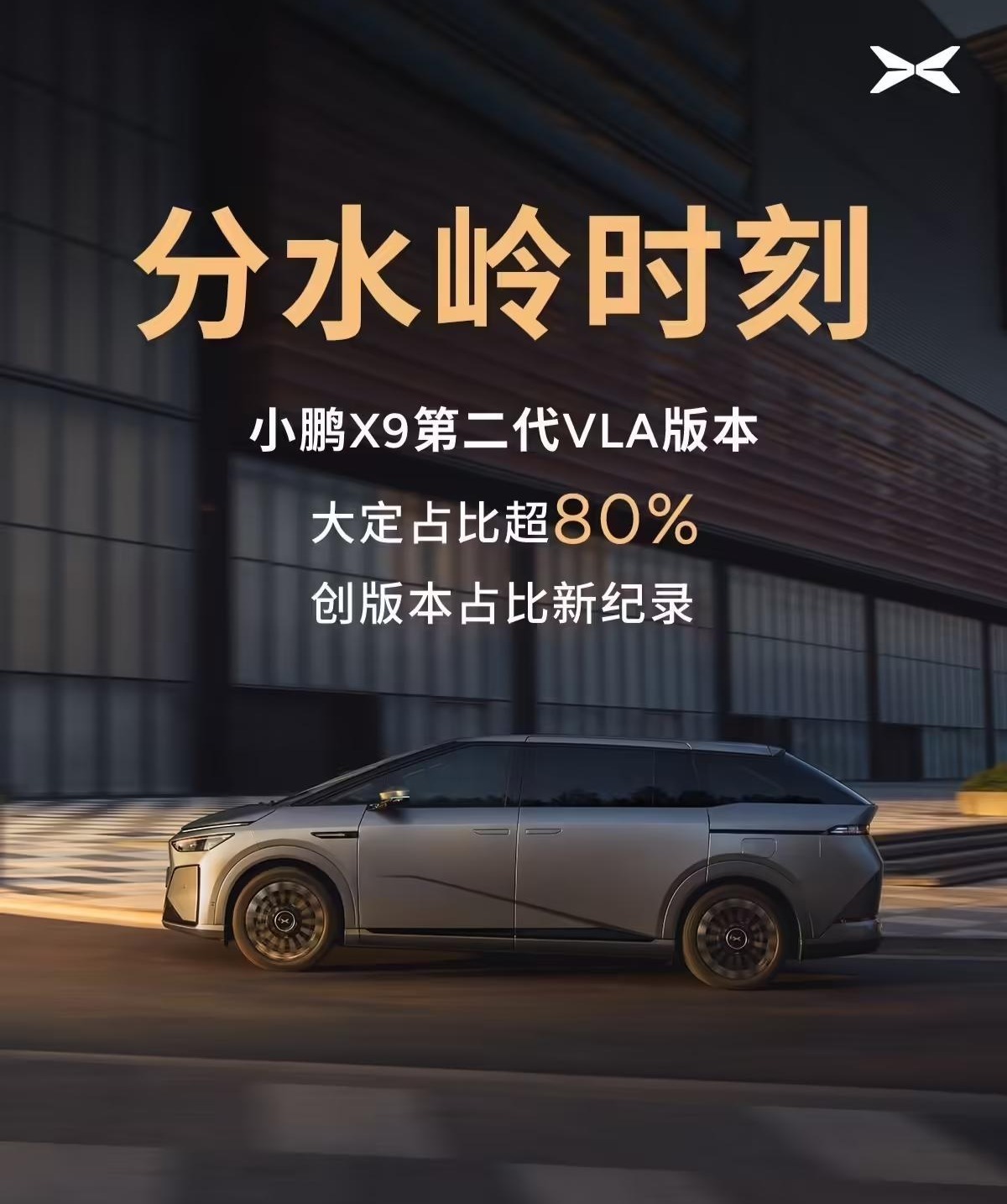 4.小鹏X9第二代VLA版本大定占比超8成,官方称“分水岭时刻”