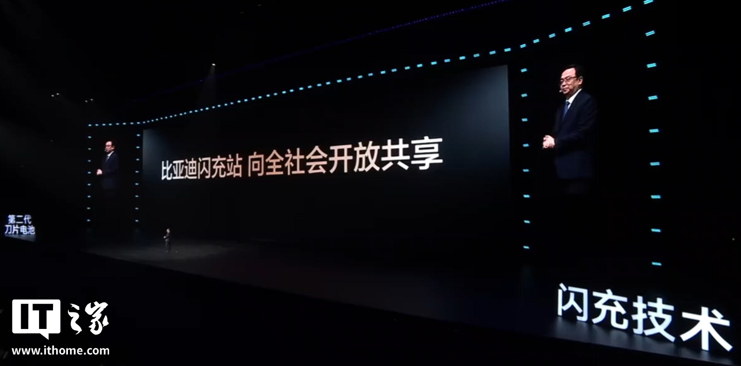 IT之家 3 月 5 日消息,比亚迪今日正式发布了第二代刀片电池和闪充技术,比亚迪董事长兼总裁王传福宣布,即日起,所有搭载第二代刀片电池的闪充车车主,自交车之日,赠送 1 年免费闪充权益。
