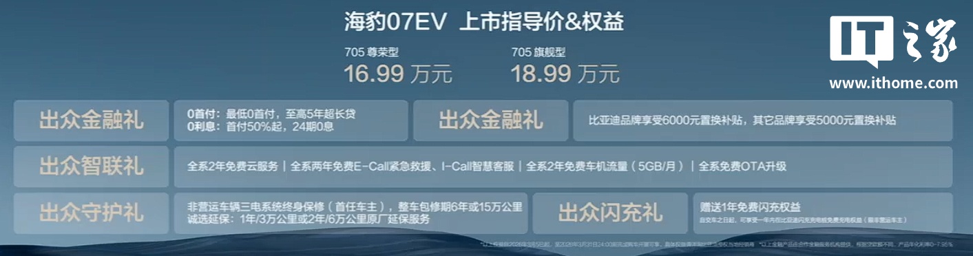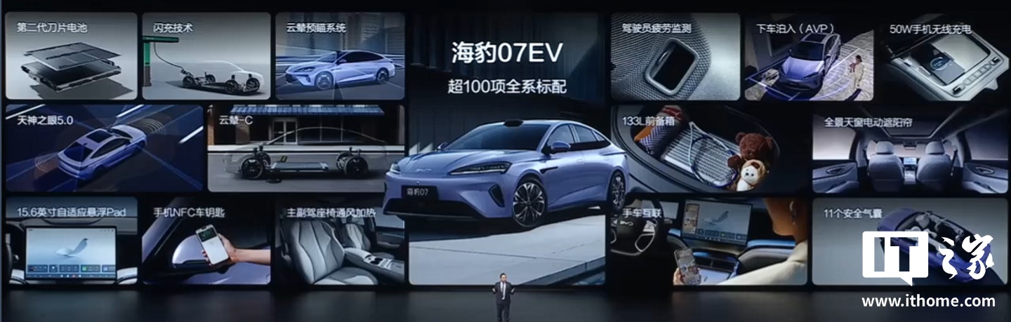 IT之家 3 月 5 日消息,比亚迪海豹 07 EV 车型今日正式发布,搭载比亚迪第二代刀片电池 + 闪充技术,上市指导价 16.99 万元起。